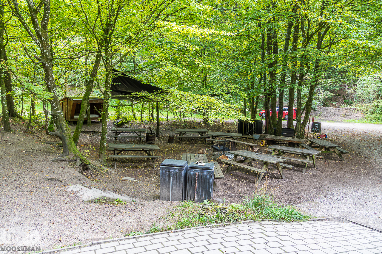 Wer es weniger dunkel und kühl haben möchte kann auch die Shelterhütte oben neben dem Café Skovhytten beziehen 😏. Beides kann über die Kalkgruben-Verwaltung gebucht werden.
