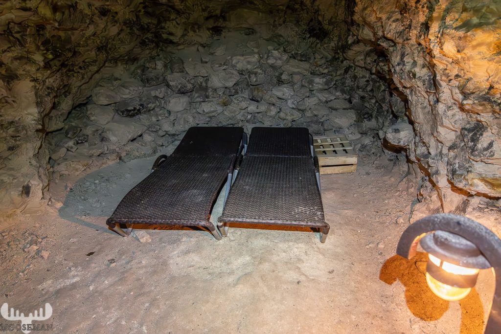 Besonders spannend muss es dann noch sein, wenn man in den Gruben übernachtet (außer während der Schutzzeit für die Fledermäuse): In einer kleinen Höhle befindet sich eine Liege, die man dann von 16.00 bis morgens um 10.00 nutzen kann.