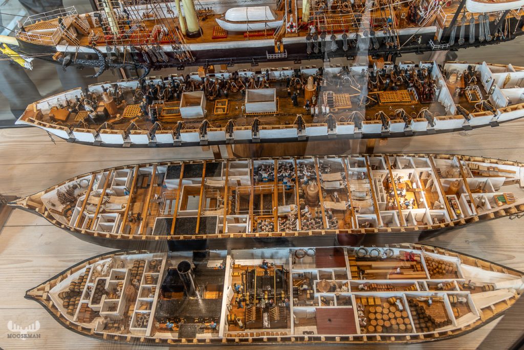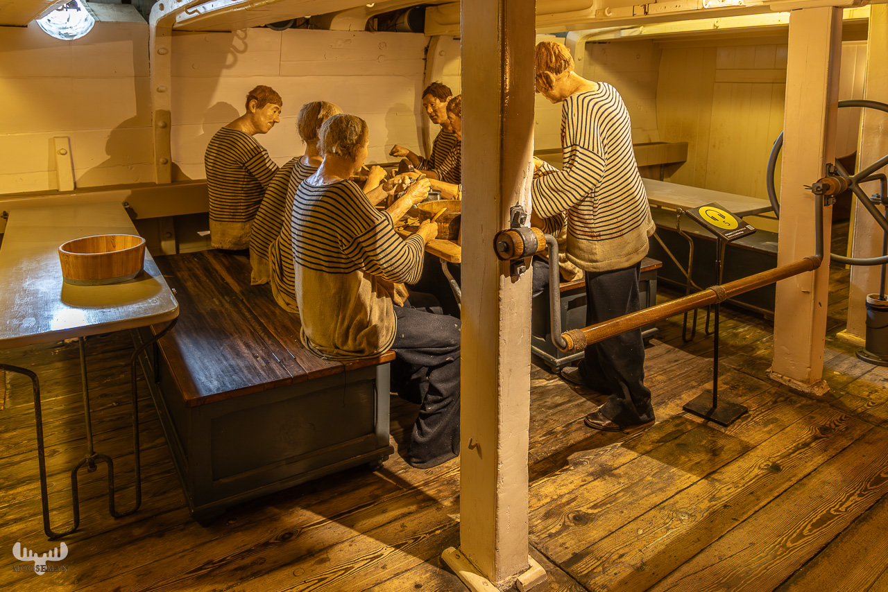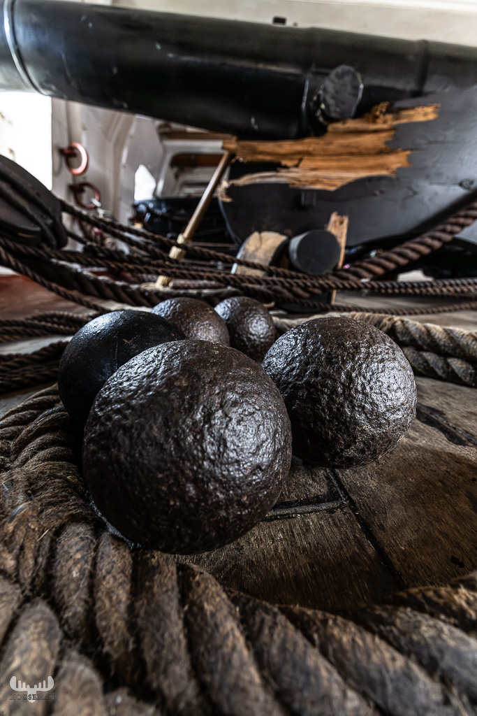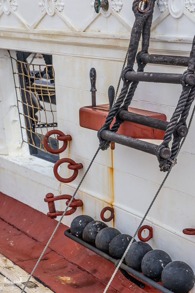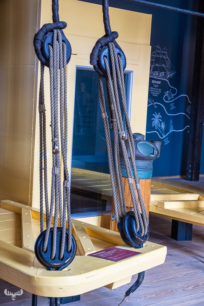 Im Eingangsbereich findet man natürlich einen guten sortierten Museumsshop (ich habe jetzt einen neuen Schlüsselanhänger 😄). Bevor man dann in den Außenbereich zum Schiff geht eine Ausstellung mit interessanten Informationen – so zum Beispiel zu einem realen Versuch wie eine Kanonenkugel den Schiffsrumpf durchschlägt.