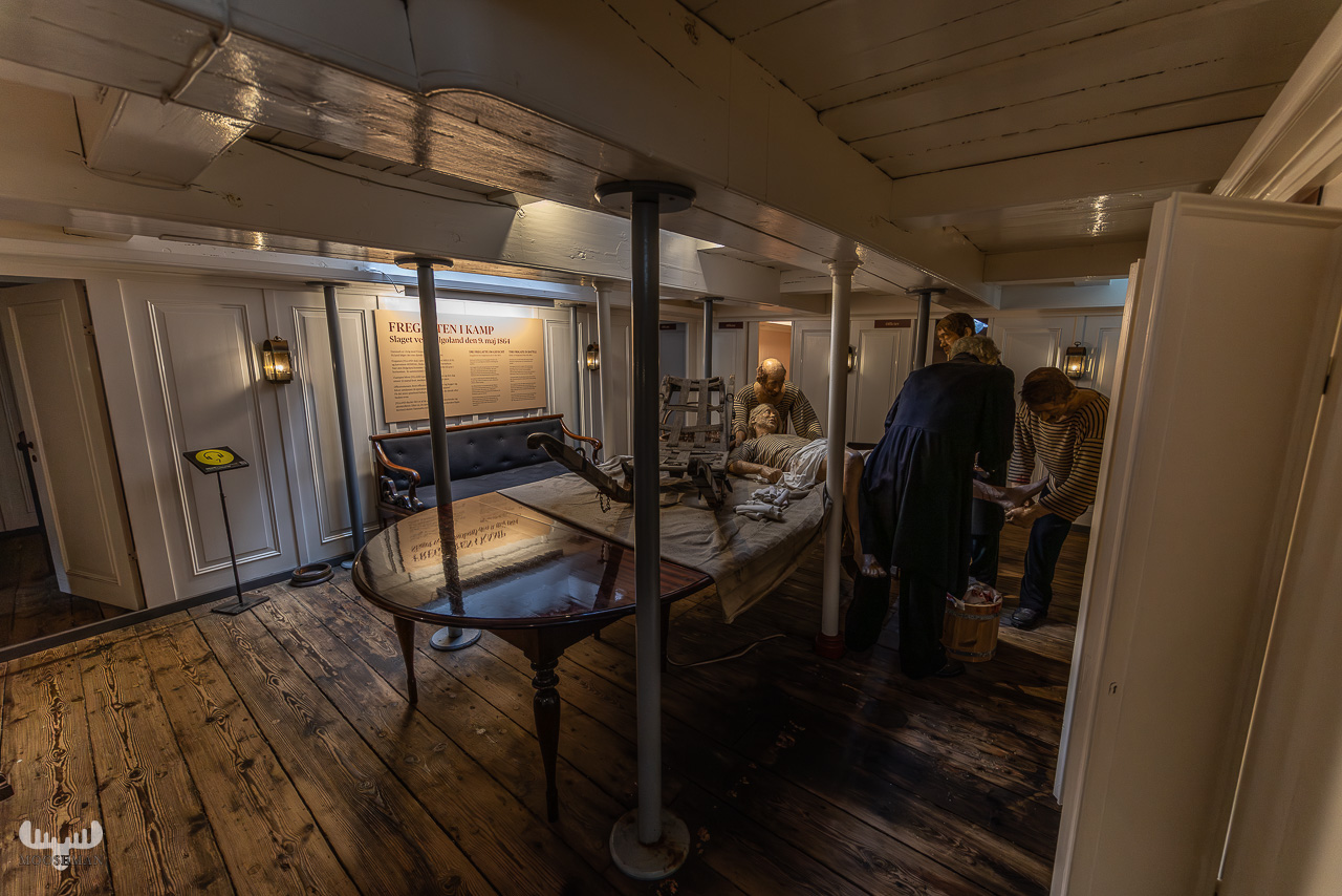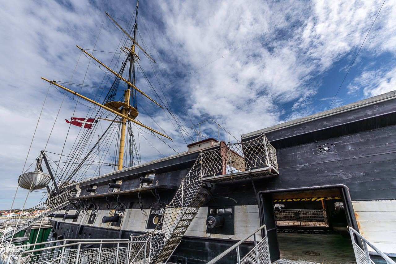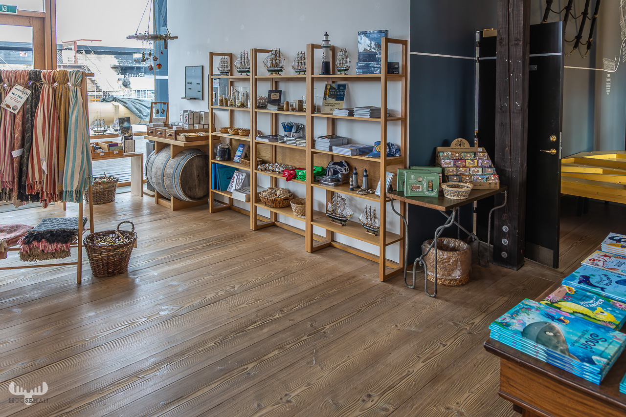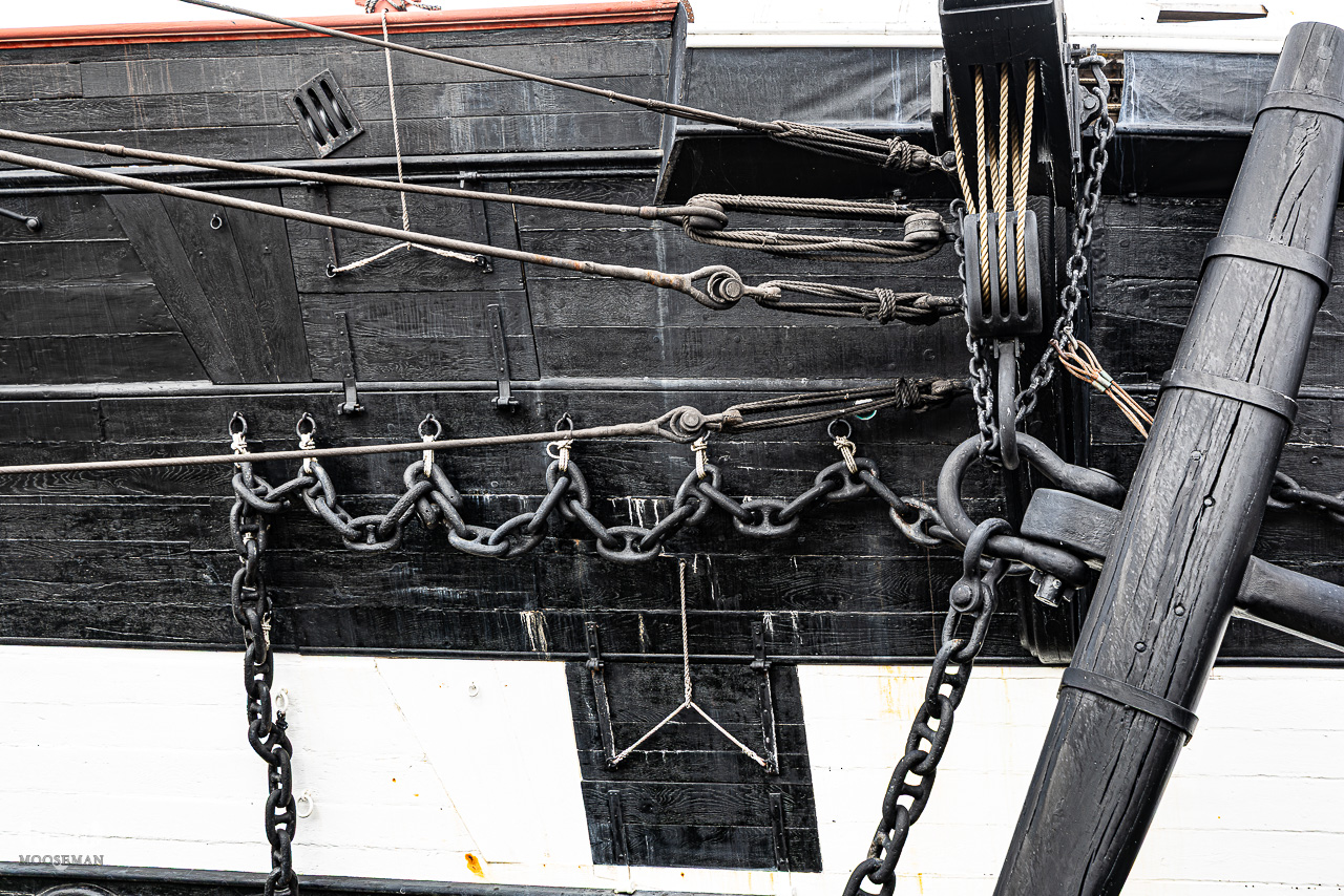 Im Eingangsbereich findet man natürlich einen guten sortierten Museumsshop (ich habe jetzt einen neuen Schlüsselanhänger 😄). Bevor man dann in den Außenbereich zum Schiff geht eine Ausstellung mit interessanten Informationen – so zum Beispiel zu einem realen Versuch wie eine Kanonenkugel den Schiffsrumpf durchschlägt.