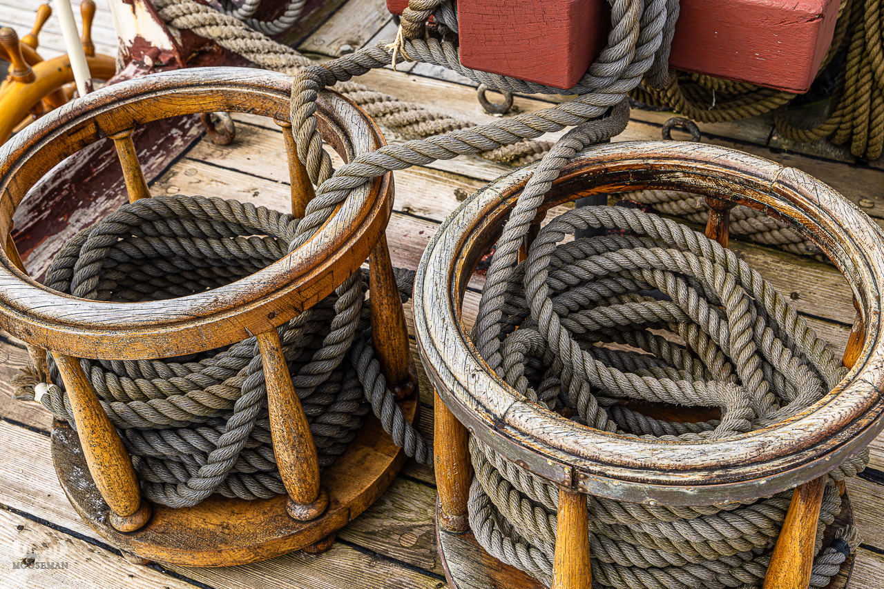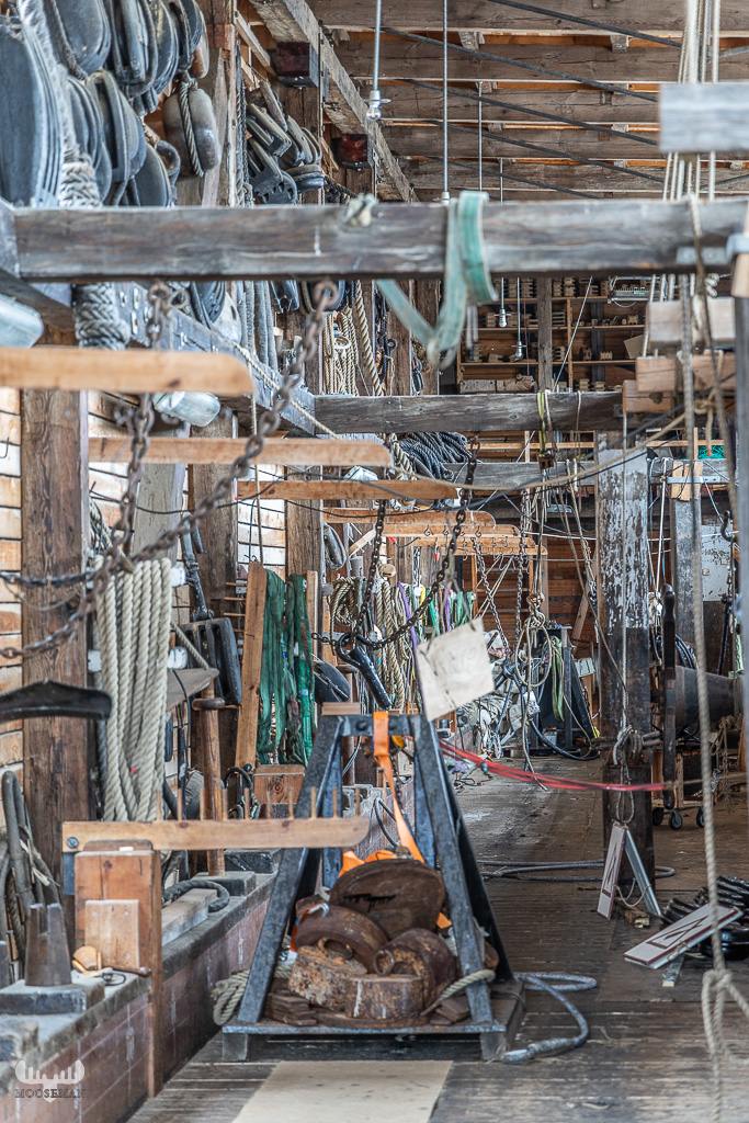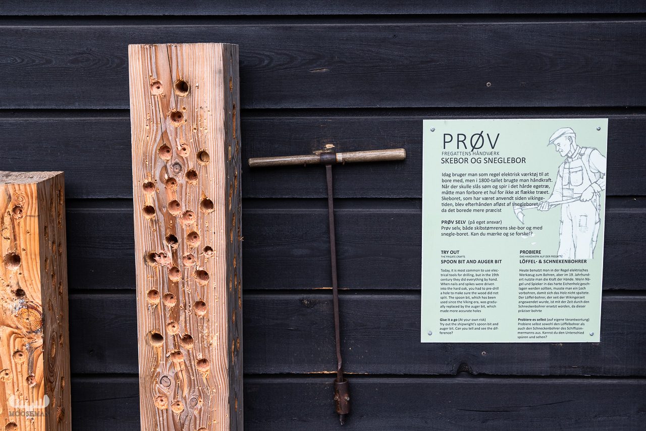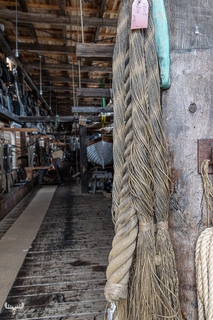 Auf dem Gelände gibt es dann neben einer Ruderbarkasse (mit der in der Hochsaison auch gefahren werden kann) auch Werkstätten rund um den Schiffsbau, in denen man auch hier und da selbst etwas bohren oder ein Seil schlagen kann.