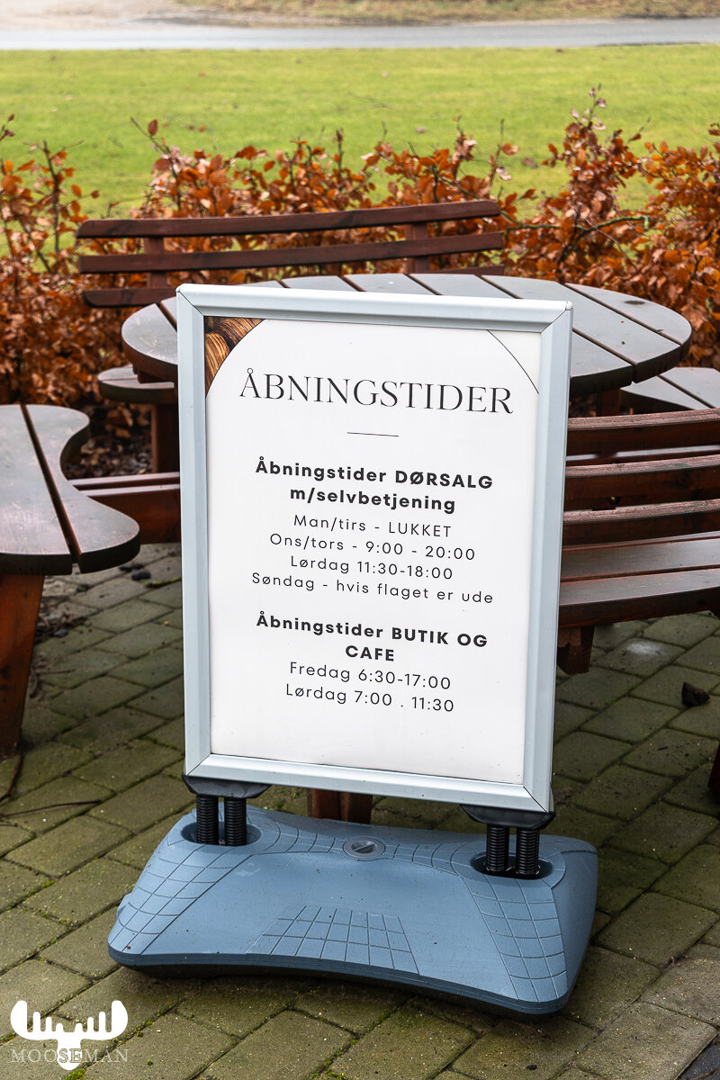 Ganz mit leeren Händen muss man auch an den Tagen, an denen Laden und Café geschlossen ist, trotzdem nicht gehen: Es gibt einen „Türverkauf“ (Dørsalg).