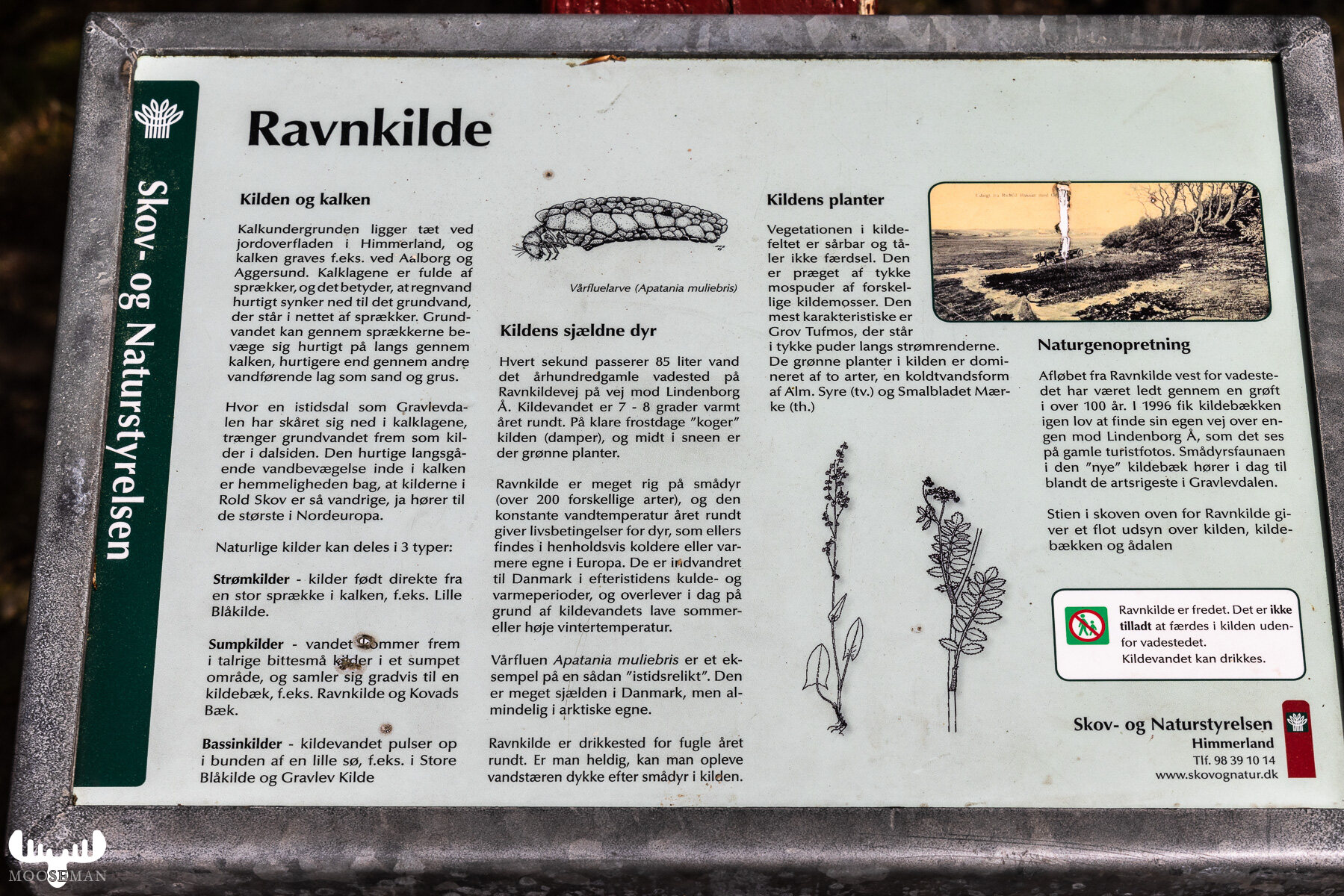 In der Nähe des oben ebenfalls angegebenen Parkplatzes längs der Straße (Rebild Parkering) findet man die wunderbare Quelle Ravnkilde, deren immer etwa 8 Grad temperiertes Wasser man auch trinken kann.