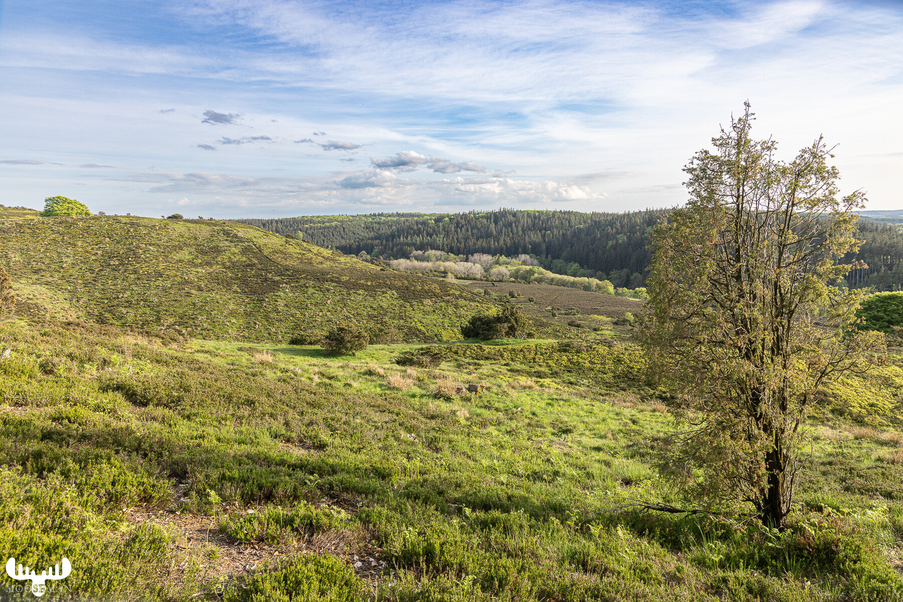 Naturschutzgebiet mit Hügeln, Wald und Heide