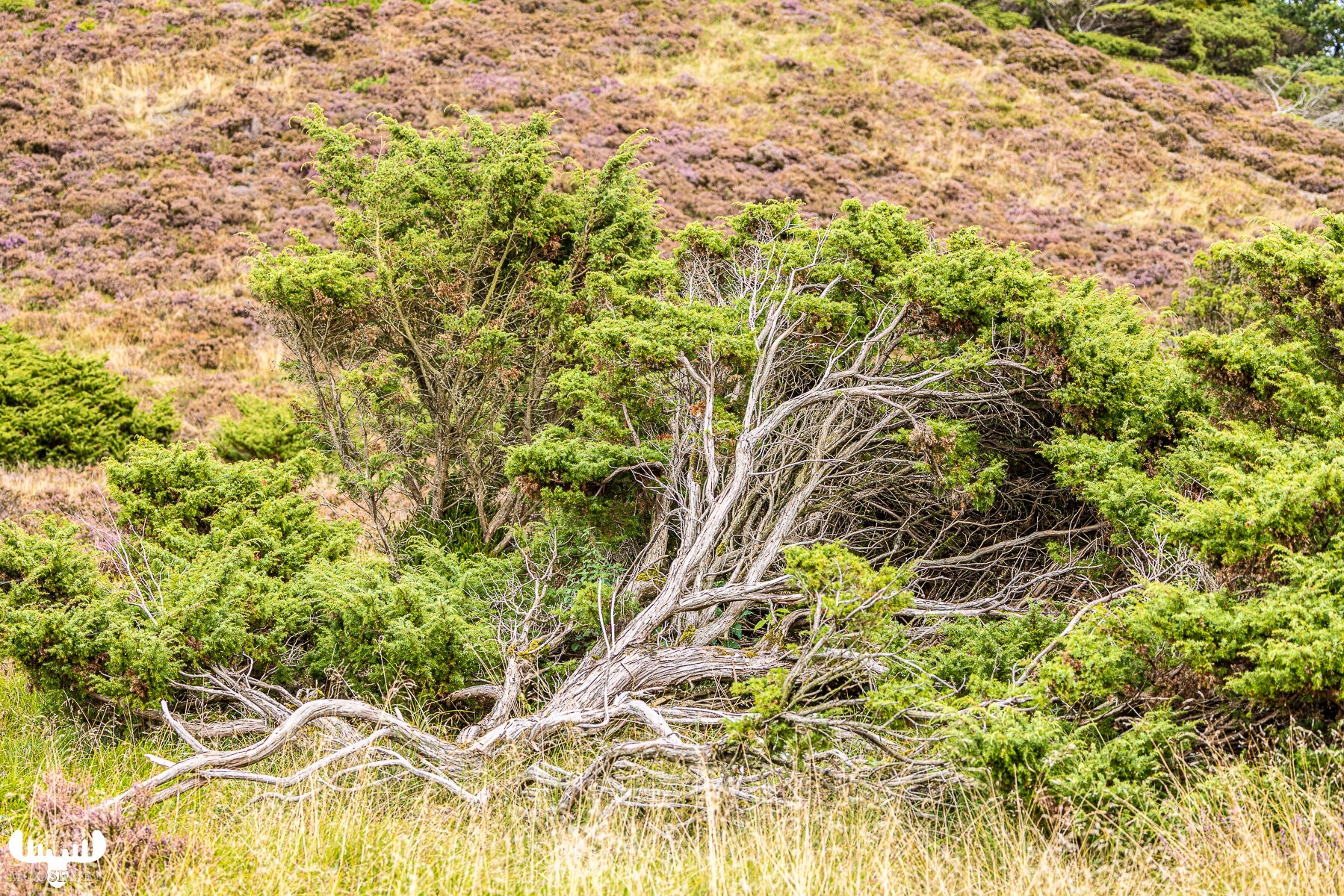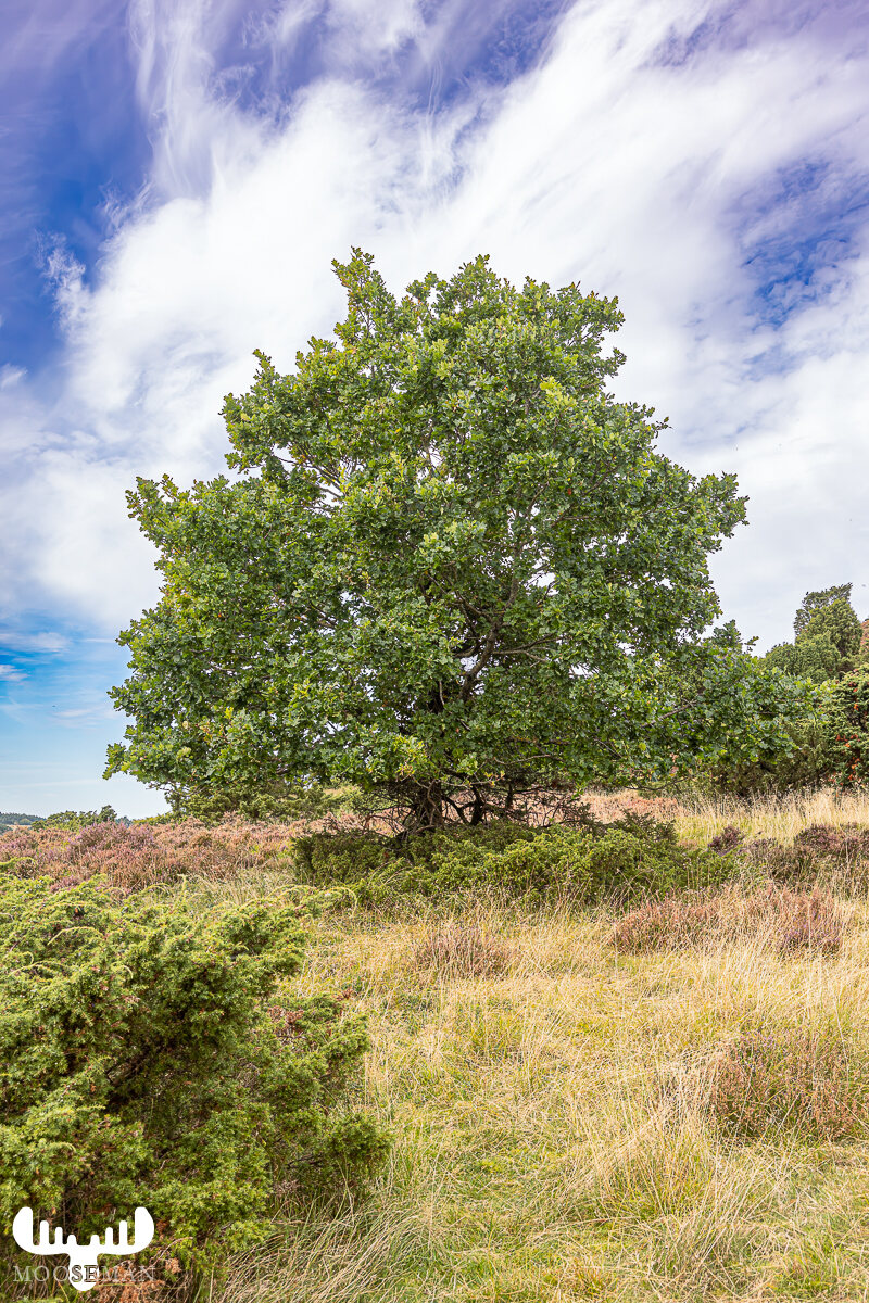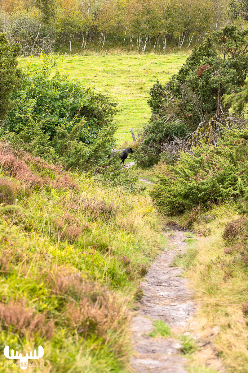 Will man zu dieser wandern, kann man vom angegebenen Parkplatz im Tal mit herrliche Blicken auf die heidebedeckten Hügel, Wald und Weideflächen entlangwandern. Das ist gerade mal ein Kilometer.